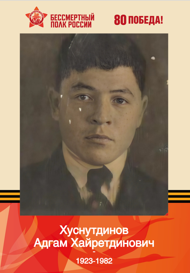 Хотя Адгам не находился на передовой, его работа имела важное стратегическое значение для общей победы Советского Союза. Военные заводы внесли огромный вклад в защиту Родины, трудясь круглосуточно ради спасения страны.Ушёл из жизни Адгам Хуснутдинов 6 июня 1982 года, оставив неизгладимый след в истории своего края и своей семьи. Сегодня мы хотим поблагодарить его за мужественный труд, за преданность делу, за верность Родине и народу.