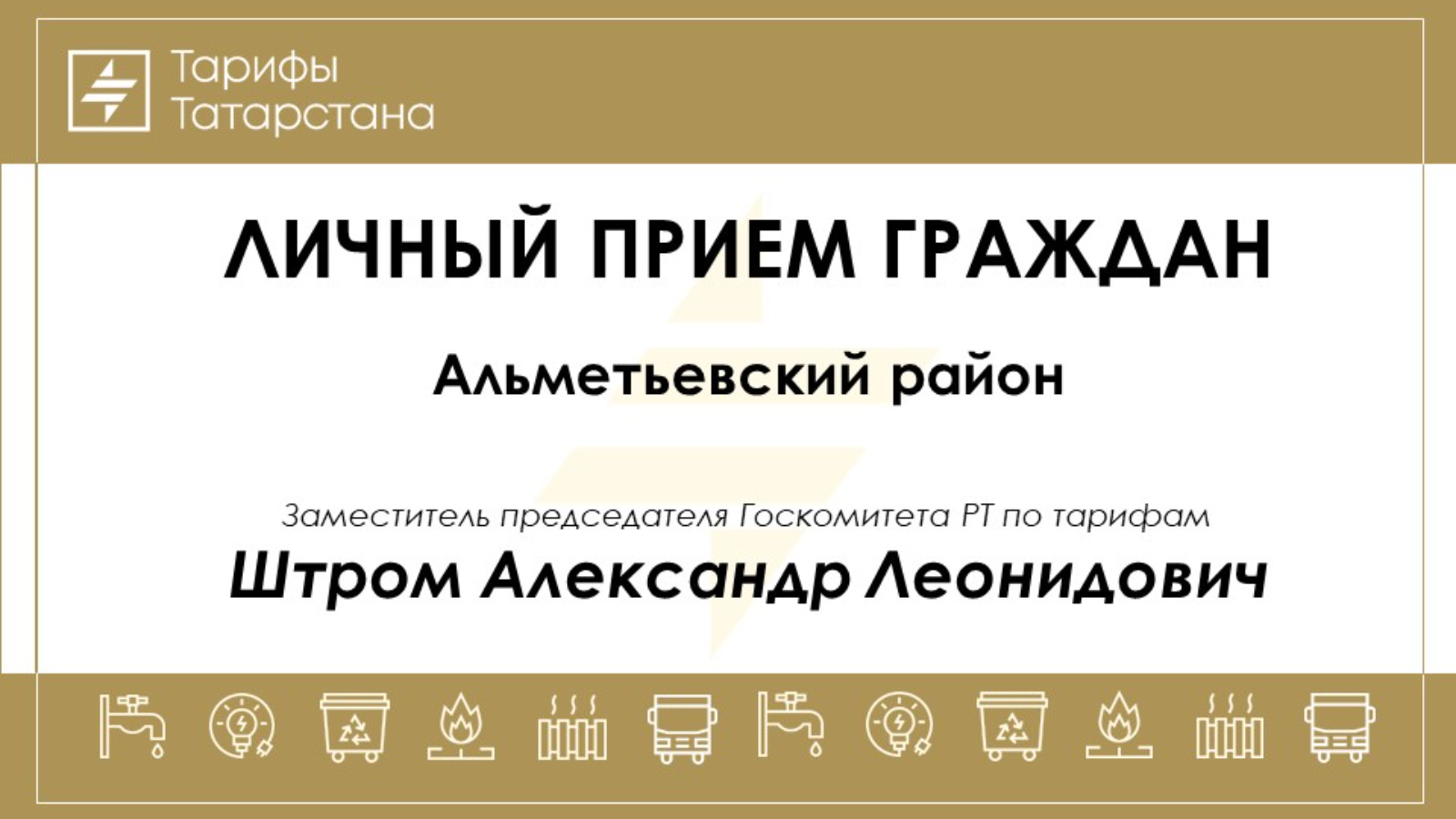 25 февраля заместитель председателя Государственного комитета Республики Татарстан по тарифам Александр Штром проведет выездной личный прием граждан.