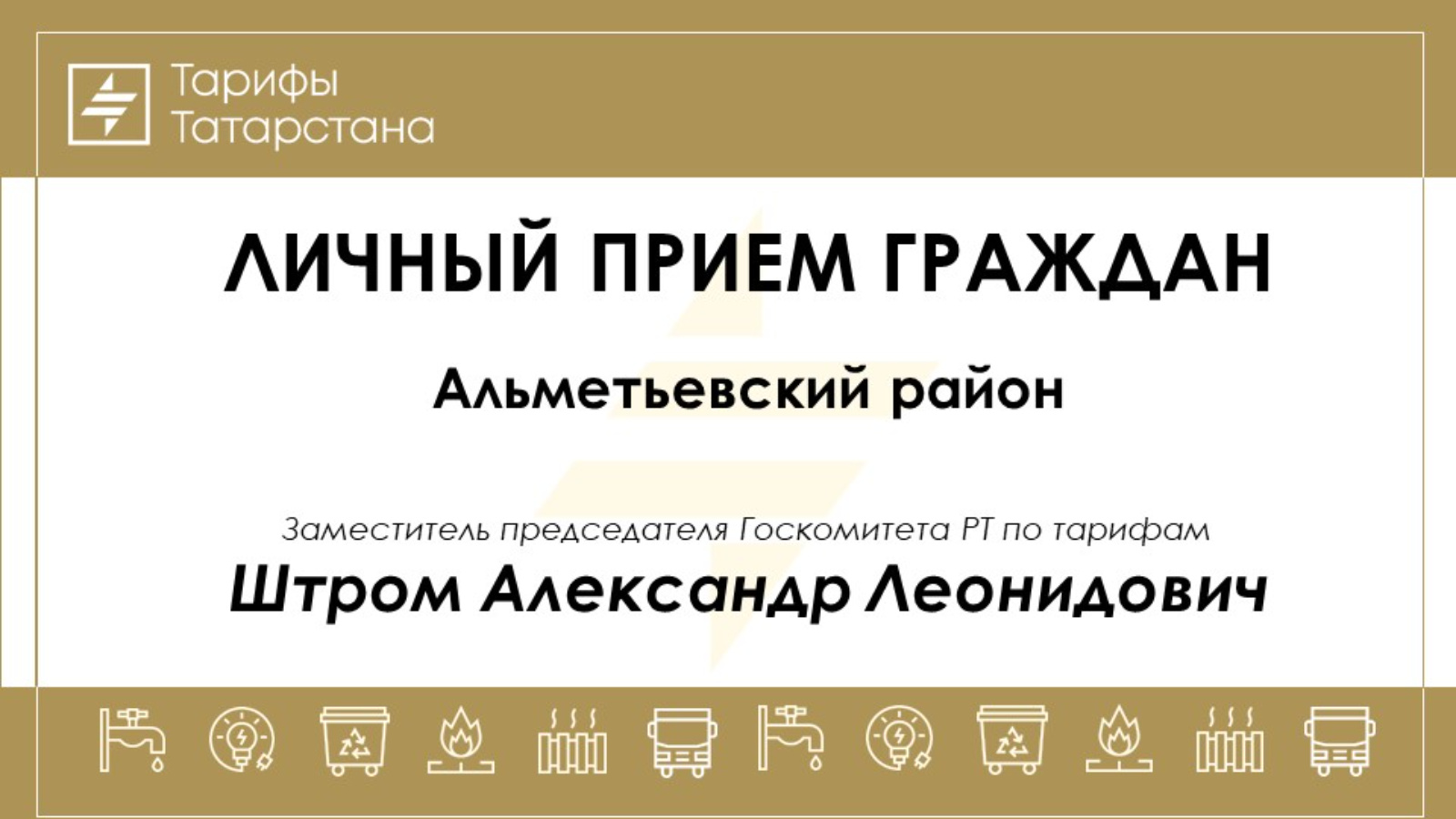 25 февраля заместитель председателя Государственного комитета Республики Татарстан по тарифам Александр Штром проведет выездной личный прием граждан.
