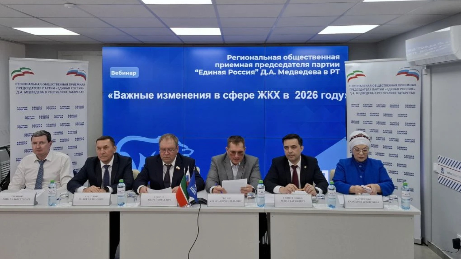 Сегодня в Региональной общественной приёмной Председателя Партии «Единая Россия» Дмитрия Медведева в Республике Татарстан состоялся вебинар «Важные изменения в сфере ЖКХ в 2026 году». Мероприятие прошло в рамках Недели приёмов граждан по вопросам жилищно-коммунального хозяйства. Модератором выступил депутат Государственного Совета Республики Татарстан Андрей Егоров.