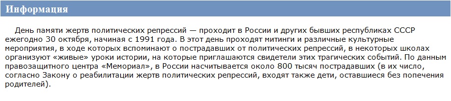 Завтра, в России вспоминают тех, кто пал жертвой политических репрессий, чьи судьбы оказались изломанными трагическими событиями прошлого.