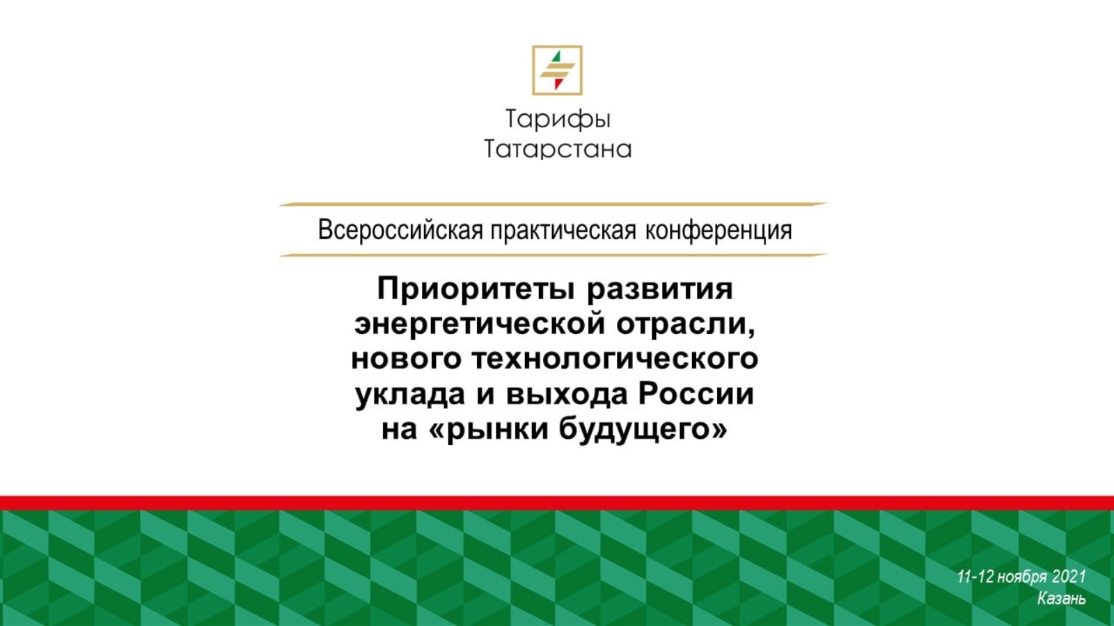 «Энергетика тармагын үстерү өстенлекләре, яңа технологик рәвеш һәм Россиянең «киләчәк базарларына» чыгуы» бөтенроссия гамәли конференциясе үз эшен дәвам итә. Соңгы көннең турыдан-туры трансляциясен (1 өлеш, 2 өлеш) Татарстан Республикасы Тарифлар буенча дәүләт комитеты сайтында 10.00 сәгатьтән башлап карарга була.