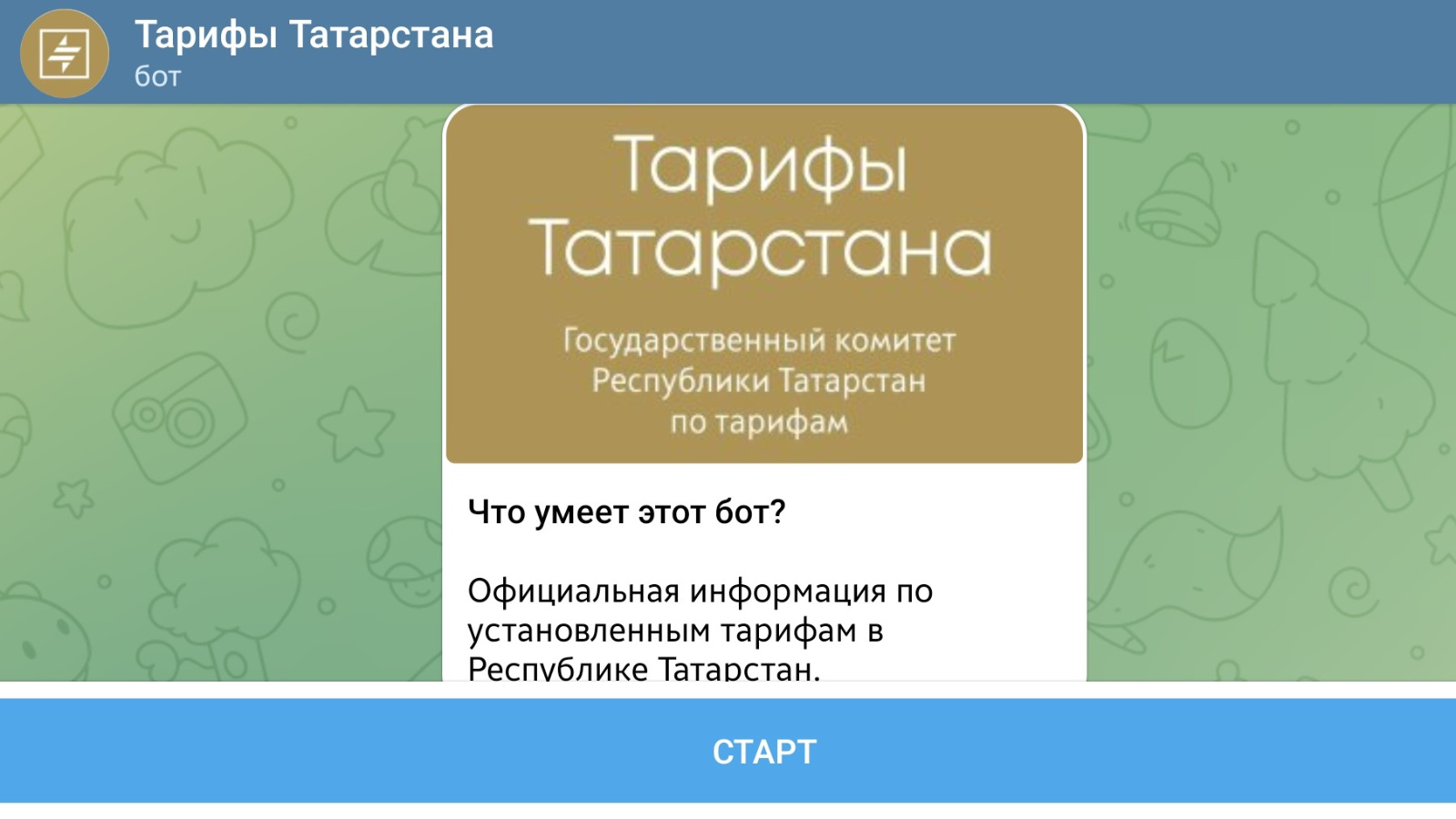Татарстан Республикасының Тарифлар буенча дәүләт комитеты «Татарстан тарифлары» дигән үз телеграм-ботын проектлады, аның ярдәмендә гражданнар гамәлдәге тарифлар белән таныша алачак.