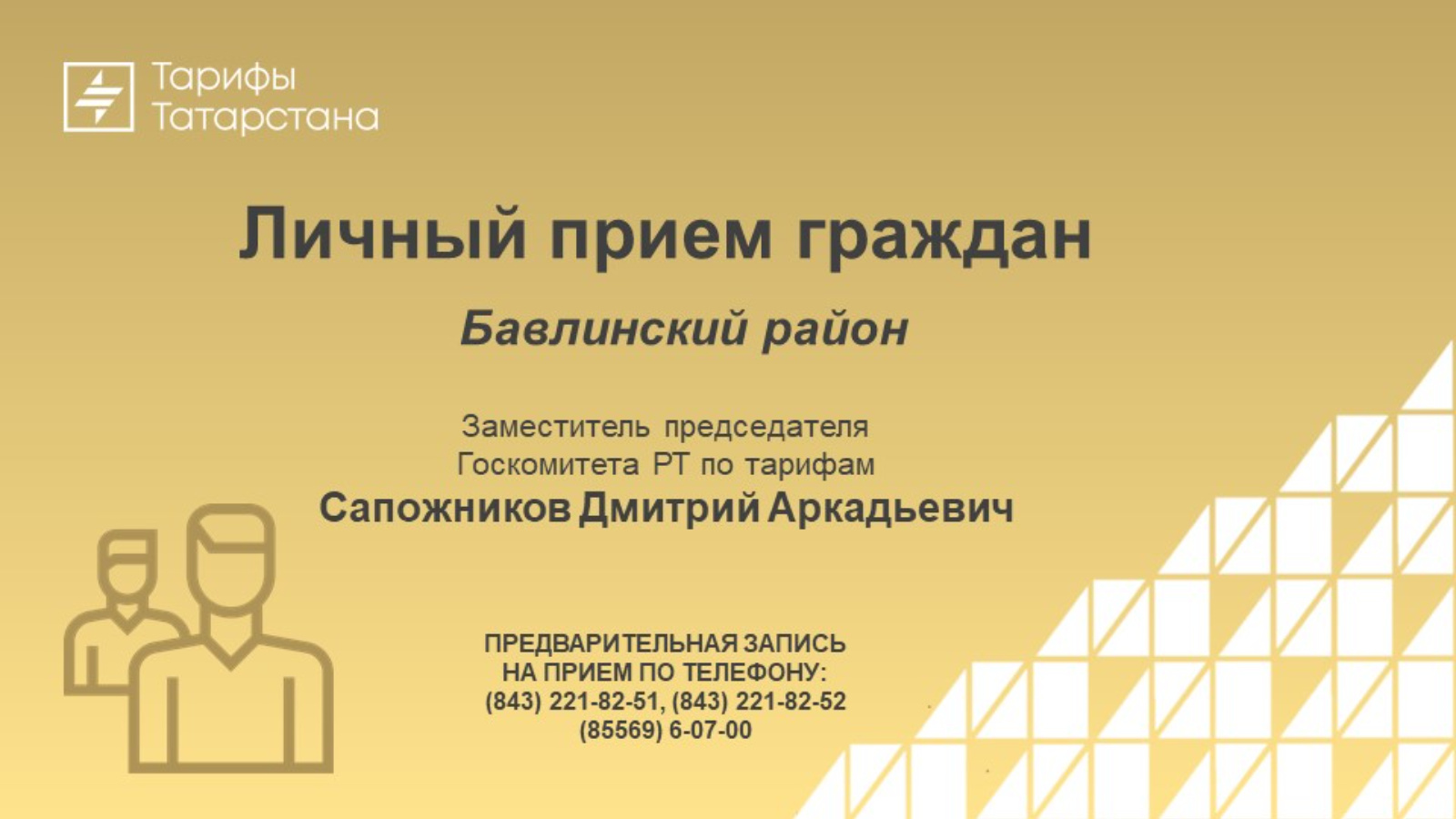2023 елның 26 сентябрендә ТР Тарифлар буенча дәүләт комитеты рәисе урынбасары Дмитрий Сапожников эш визиты белән Баулы муниципаль районында булачак, аның барышында Баулы шәһәре, Куйбышев урамы, 20 йорт адресы буенча гражданнарны шәхси кабул итү планлаштырыла.