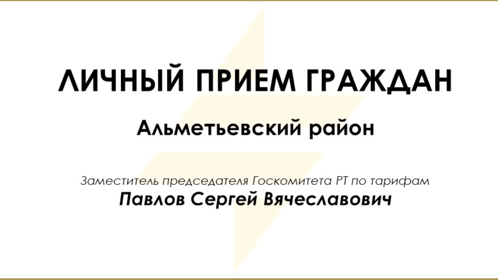 2025 елның 13 маенда ТР Тарифлар буенча дәүләт комитеты рәисе урынбасары Сергей Павлов Әлмәт районына эш визиты белән барачак, анда Әлмәт шәһәре, Ленин урамы, 39 адресы буенча гражданнарны кабул итү планлаштырыла.