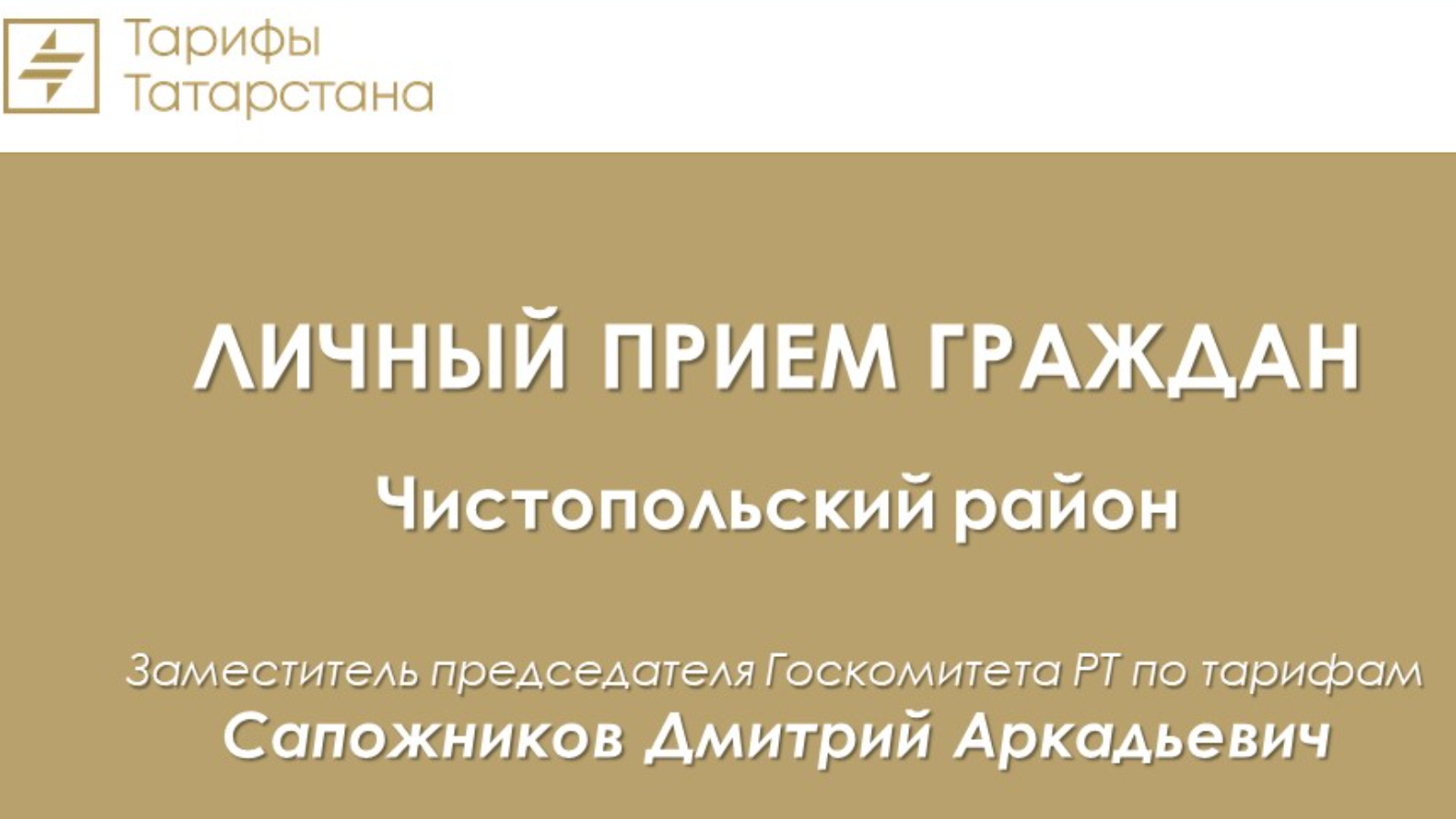 2025 елның 24 июнендә ТР Тарифлар буенча дәүләт комитеты рәисе урынбасары Дмитрий Сапожников эш визиты белән Чистай районына барачак, анда Чистай шәһәре, Бебель урамы, 129 адресы буенча гражданнарны кабул итү планлаштырыла.