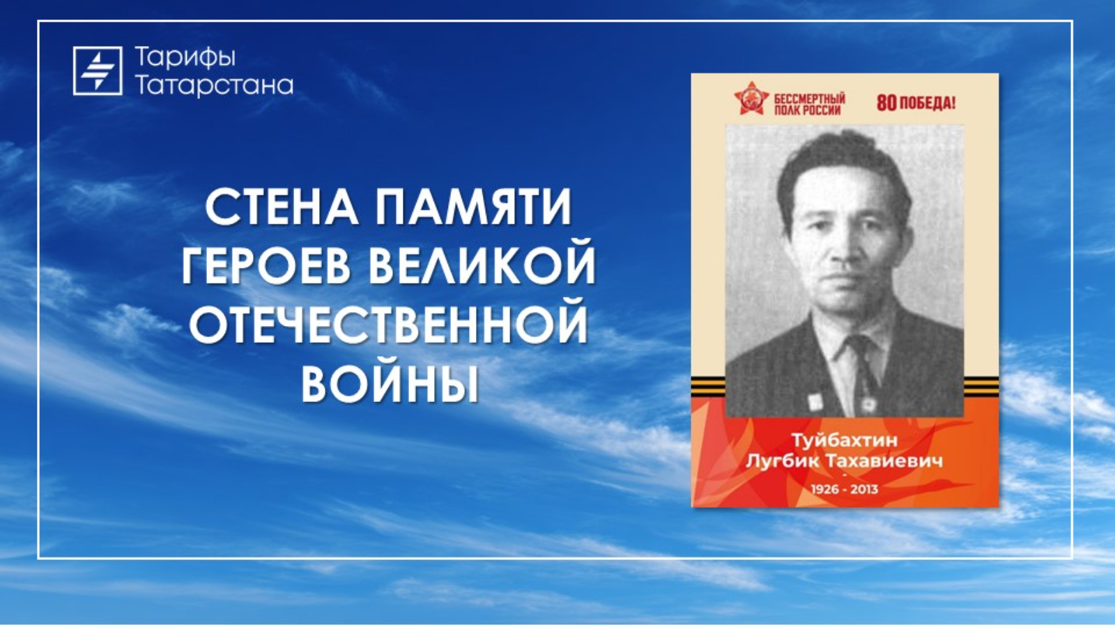 "Тормышы, бигрәк тә Бөек Ватан сугышы елларында, сынаулар һәм батырлык белән тулы булган, яраткан бабамны искә алганда, йөрәк җылылык белән тула. Туйбахтин Лугбик Тәхәви улы 1926 елның 23 мартында Татарстан АССРның Чистай шәһәрендә туа. Урта техник белем алгач, 1942 елда эвакуацияләнгән 2 нче Мәскәү сәгать заводында хезмәт юлын башлый.