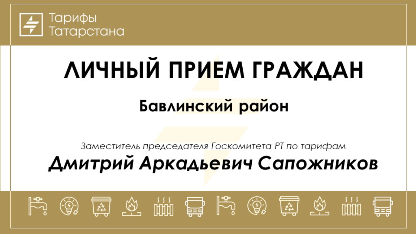 30 нчы сентябрьдә ТР Тарифлар буенча дәүләт комитеты рәисе урынбасары Дмитрий Сапожников Баулы районына барачак.