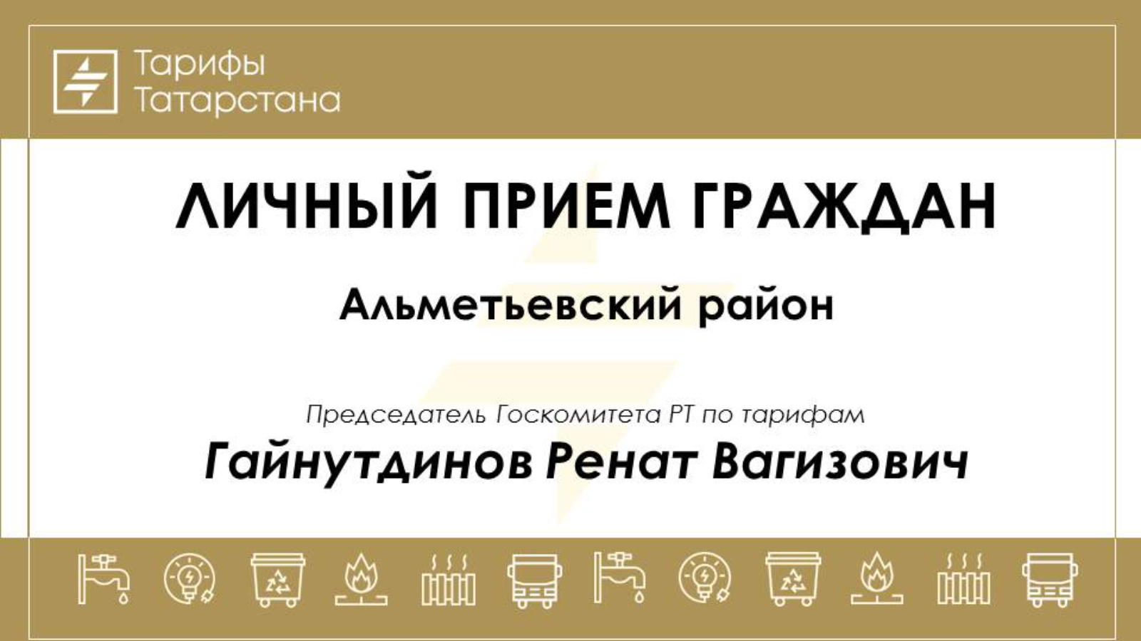 ТР Тарифлар буенча дәүләт комитеты рәисе Әлмәттә гражданнарны кабул итәчәк