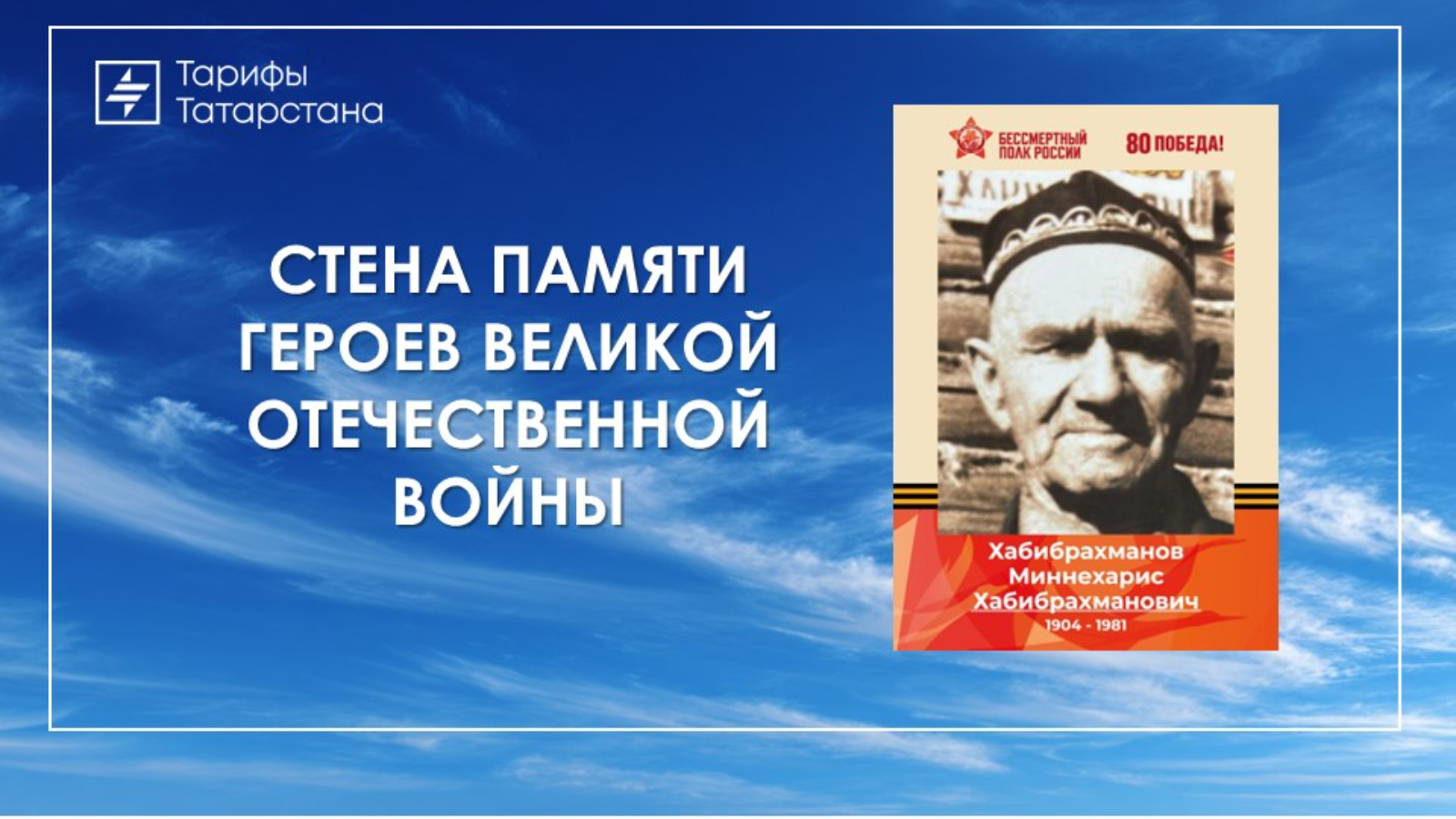 Ватанны саклаучылар елы кысаларында БӨЕК ВАТАН СУГЫШЫ ГЕРОЙЛАРЫНЫҢ ХӘТЕР СТЕНАСЫ проектын дәвам итәбез.