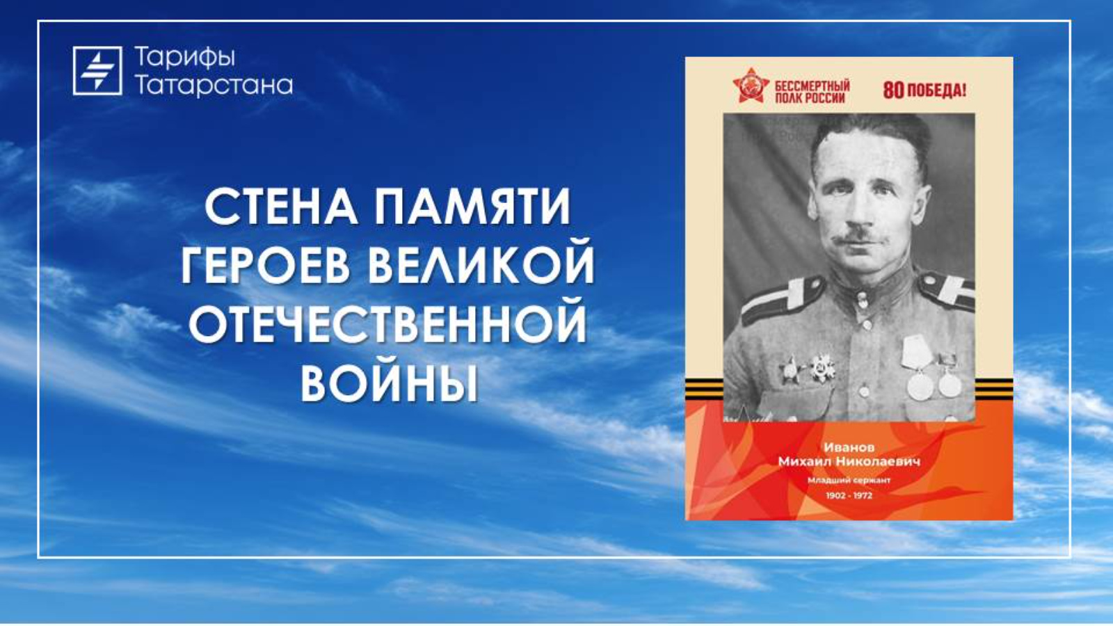 «Иванов Михаил Николаевич 1902 елда Татарстан АССРның Теләче районы Әтрәч авылында туа. Аның яшьлеге авыр сынаулар чорына туры килә – ул гражданнар сугышын уза, бу аның характерын һәм рухын чыныктыра.