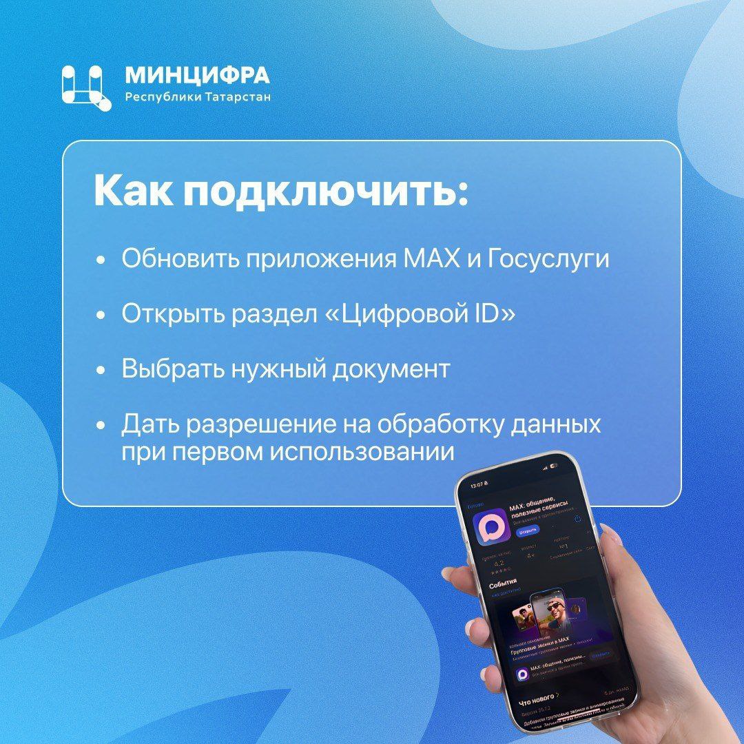 МАХ милли мессенджеры кулланучылары Дәүләт хезмәтләре порталыннан үз документларына уңайлы керү мөмкинлеген алды. Хәзер паспорт, машина йөртү таныклыгы, СНИЛС, ОМС полисы һәм ИНН турыдан-туры профильдә - «Цифрлы ID» бүлегендә.